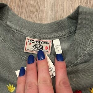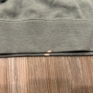 New with tags but I think it got bleach on it. lol I thought it was the design because I think it looks cute, but then I saw a dot on the bottom (shown in the photos) so it might have been bleach. Cute either way and super soft!