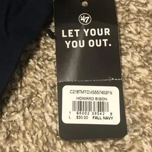 47 Brand Washington Howard Bison Navy T-Shirt, new with tags, Size Large, no flaws, 100% Cotton