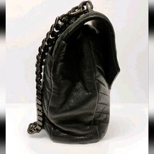 Design: The design includes a top handle and a removable or adjustable chain strap for versatility, allowing it to be carried as a satchel or a shoulder bag.