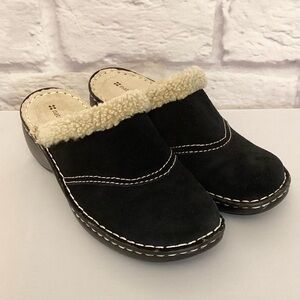 Naturalizer 9 Strayman Suede Leather Women's Clogs Shearling Faux Fur Black