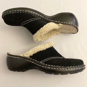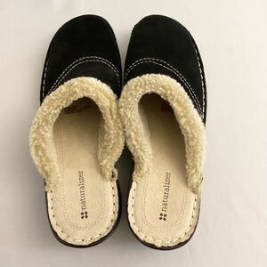 Naturalizer Size 9 Strayman Suede Leather Women's Clogs, Shearling Faux Fur Limed, Black. Preowned. Nice condition.
