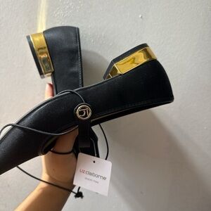 Liz Claiborne Black Flats with Gold Heel