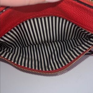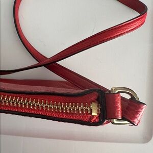 The PERFECT red 😍 Gorgeous + bold red crossbody bag from Kate Spade. 100% cow leather. See corner for wear but otherwise excellent condition. Normal wear around top zipper on inside but easy clean. This beauty measures 9” x 11” and features an inside zipper pocket, an exterior zip pocket with tassel, and the top zip has a tassel. The hardware on this piece is silver and perfectly accents this stunning red! ❤️ Zippers all glide smoothly. Strap is in excellent condition with no peeling/cracking/rubbing.
