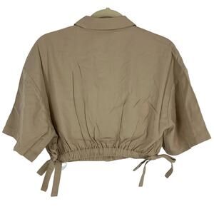 Billie the Label Imogene Crop Top Linen Blend Khaki Medium Collar Button Tencel