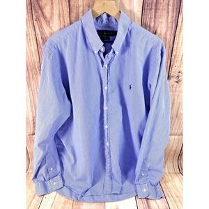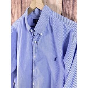 Ralph Lauren Mens XXL Shirt Blue Stripe Button Down Long Sleeve Slim Fit 2XL