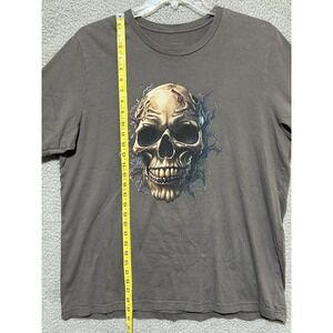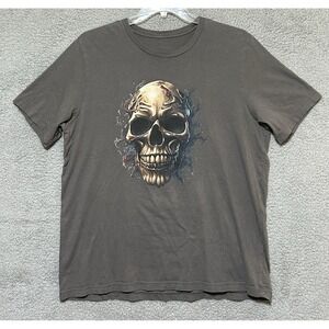 Skull Graphic Shirt Mens XL Brown Short Sleeve Smiling Halloween Liquid Metal