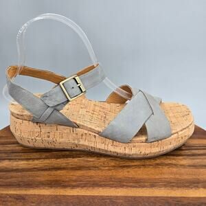 Korks Sandals Womens 9M Gray Leather Adjustable Buckle Cross Strap Wedge Comfort
