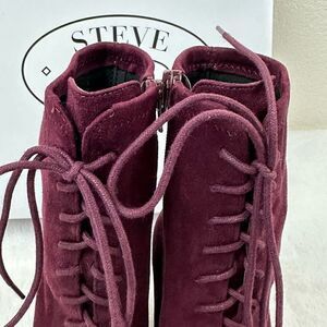 Steve Madden Elley Maroon Faux Suede Boots size 9. Lace up with side zipper. No signs of wear. Excellent preowned condition.