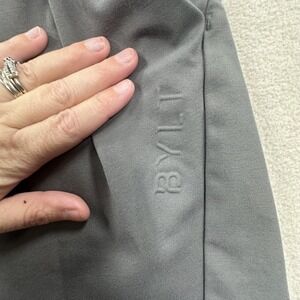 Features: Elastic waistband with internal drawstring and BYLT-branded tips, two front hand pockets, single rear welt pocket, articulated seaming along legs, wide ankle cuffs, tonal BYLT logo at leg, smooth stretch knit fabric suitable for active or casual wear.
