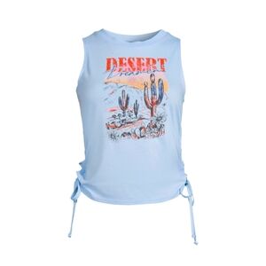 No Boundaries NEW Lace Up High Neck Graphic Muscle Tank