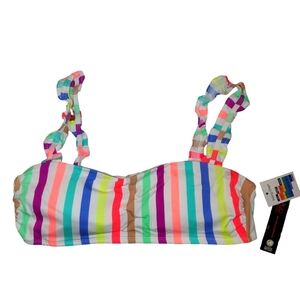 No Boundaries NEW Junior's Ribbed Ruffle Strap Bandeau Bikini Swim Top 1027 - 32