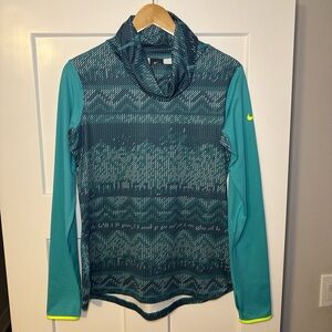 Chic Nike hoodie with a patterned design. Features teal and lime accents. Ideal for casual outings.