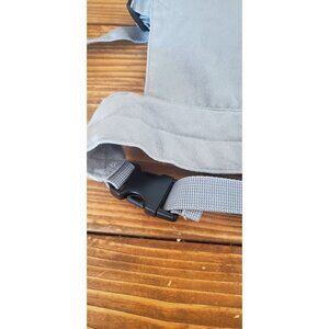 Durable and adjustable doll carrier designed for children, featuring comfortable padded straps and secure buckles. Promotes imaginative play and encourages nurturing behavior. This doll carrier is a grayish tan color.