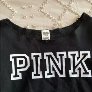 Victoria's Secret Black Off-Shoulder Sweater with White Lettering