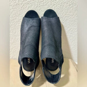 VANELi Womens Heeled Sandal, Black PERF Charm/Black Suede- Size 10