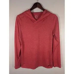 Nike Hoodie Womens Medium Red Dri-FIT Long Sleeve V-Neck Pullover Running