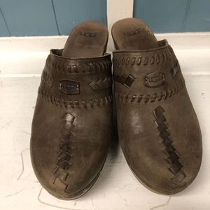 UGG Women's Size 9 Slip On Clogs, Tan Brown Clogs With Wooden Heels