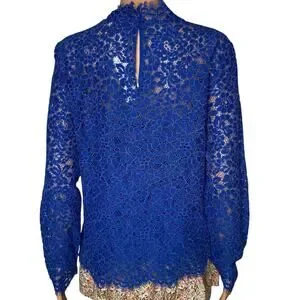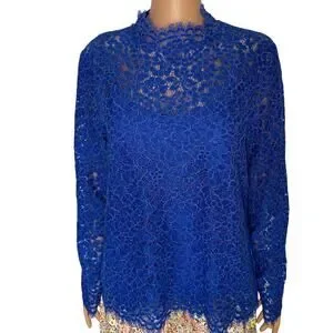 J. Crew Lace Top Long Sleeve Blue size 8 scalloped mock neck New