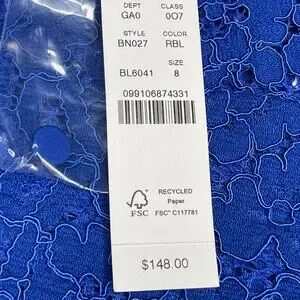 J.Crew scalloped lace mockneck top in Regal Blue size 8 New with tags