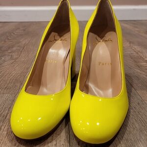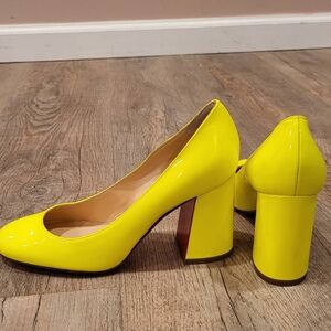 Brighten your wardrobe with these stunning yellow patent leather pumps. Perfect for adding a pop of color to any outfit.