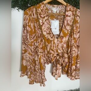 NWT Band of the Free LIBBY GOLD FLORAL BELL SLEEVE CROP TOP