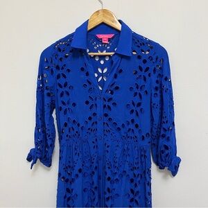 Lilly Pulitzer Borealis Blue Amrita Midi Eyelet Shirtdress Sundress Size 0