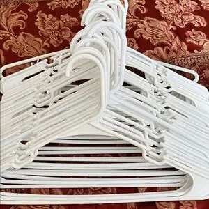 Organize your wardrobe with these durable white plastic clothes hangers. Perfect for keeping your clothes neat and tidy. Remember at a store they charge $7 for 10 hangers or more!!