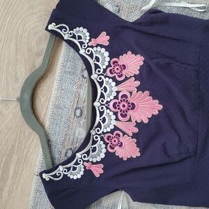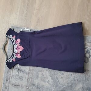 Lilly Pulitzer Allura Dress Navy Embroidered Sheath Dress Sz2. Great condition. Measurements in photos. Smoke-free/pet-free home.