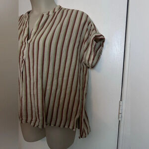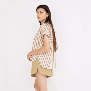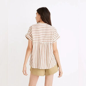Madewell Crinkle Cotton Lakeline Popover Shirt in Stripe size Large #1348