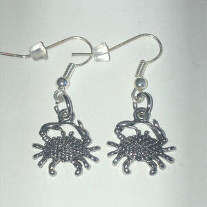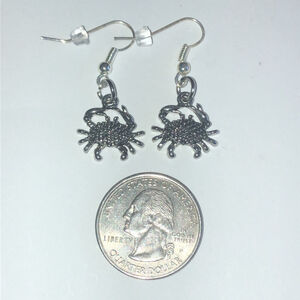 Silver Tone Dainty Dangling Crab Boho Pierced Earrings