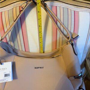 Gorgeous Ellen Tracy hobo bag, in a soft tawny tan. Great pockets, interesting hardware. MSRP $178