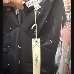 She & Sky This elegant black dress features subtle embellishments, perfect for any formal occasion. Its sleek design offers a timeless look.