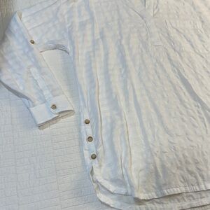J. Jill Medium white tunic long sleeve collared shirt EUC Cotton Natural Fibers