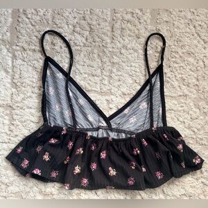 Blue Blush Black Floral Camisole Cropped Top S