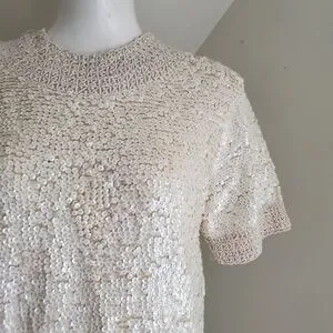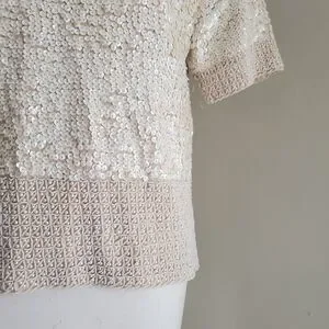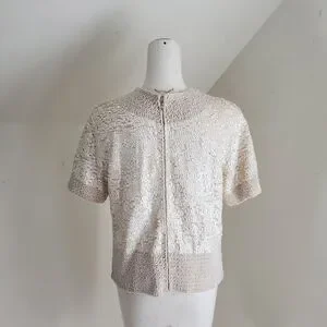 Vintage Short Sleeve Wool Beaded Sequin Top