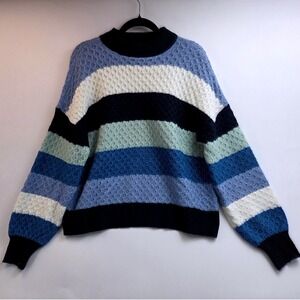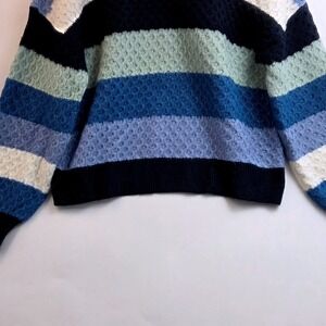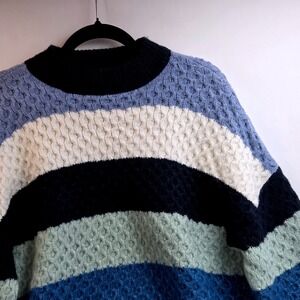 Berkley Jensen Striped Mock Neck Textured Knit Sweater Blue Multi Size M