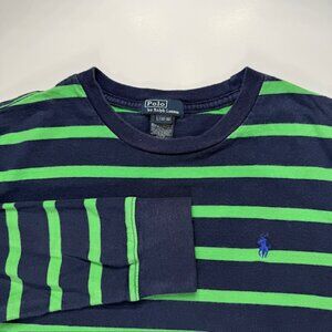 Polo Ralph Lauren Youth L 14-16 Navy Green Striped Long Sleeve Shirt Blue Pony