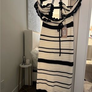 NWT Meshki Jadia black and white maxi crochet set. Size small (top and skirt). Perfect for vacation!!! Sold out online. Model is wearing a size small