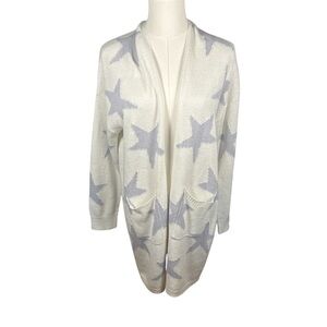 Altar’d State Cream Gray Star Print Open Front Cardigan Sweater Size Medium