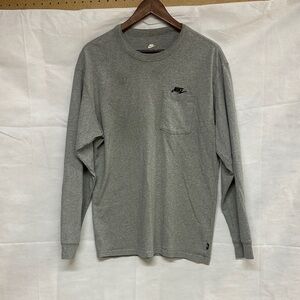 Classic Nike long sleeve tee in heather gray. Features a chest pocket and logo detail. Ideal for everyday wear.