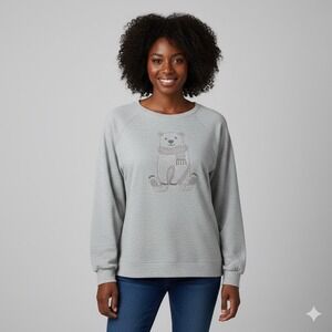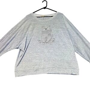 Keywords: One World, Sweatshirt, Pullover, Gray, Extra Large, XL, Teddy Bear, Rhinestone, Long Sleeve, Womens, Cozy, Casual, Cute