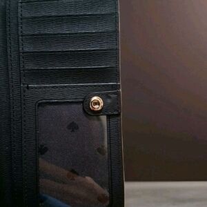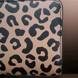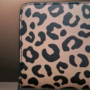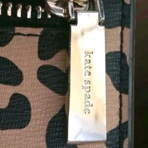 Stylish Kate Spade wallet featuring a chic leopard print design with Kate Spade New York Metal Pinmount Logo and snap closure. Holds up to 12 Cards, 4 interior slip pockets for bills, I.D. Window and zip coin compartment on the back. Meadures approximately 3.5" x 6.7". Perfect for adding a touch of elegance to your everyday look. Zipper pull has a few light scratches, please refer to pictures for condition details otherwise like new condition.