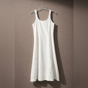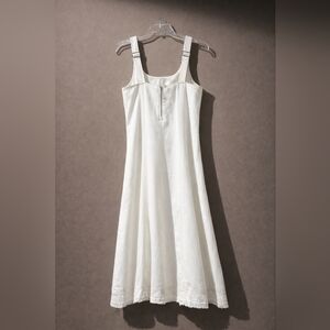 $148 Madewell Denim Scoopneck Midi Dress M Pure White Cottagecore Coastal NWT