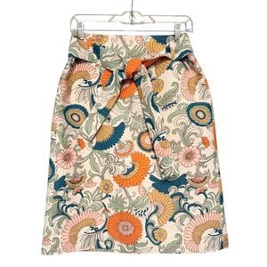 J.Crew Silk Floral Tie Waist Skirt Size 6 Lined Retro Botanical Print