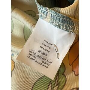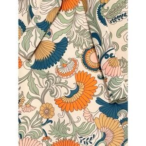 J.Crew silk skirt featuring a vibrant retro-inspired floral botanical print in soft cream, coral, teal, and sage tones. Designed with a flattering self-tie waist detail and fully lined for comfort and structure. Lightweight silk fabric with an elegant drape, perfect for spring and summer styling—dress it up with heels or keep it casual with flats.