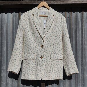 MANGO Holborn Floral Linen Blazer Oversized Cottage Praire Coquette Small NWT