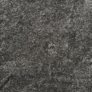 Preloved with a repair on the front that blends in well with the heathered gray texture. See last picture
