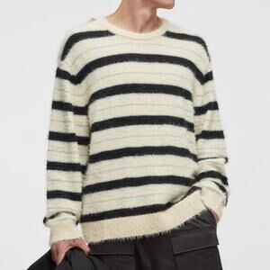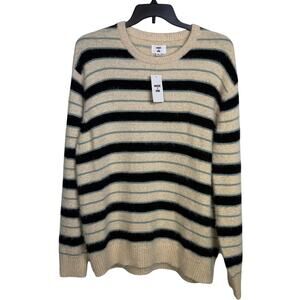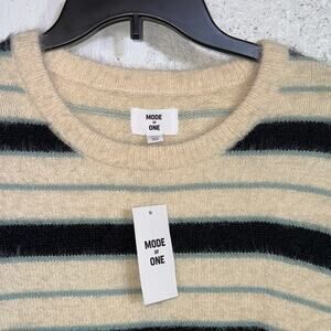 Mode of One Men's Long-Sleeve Eyelash Stripe Sweater, Dark Ecru XXL $70