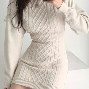 12th Tribe Global Soul Open Back Mini Bodycon Dress Chunky Knit Baggy Sleeves