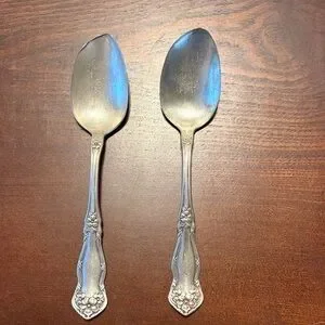 These are M. Rogers & Sons spoons with a flat or slightly squared edge at the tip, which points to their function and era.